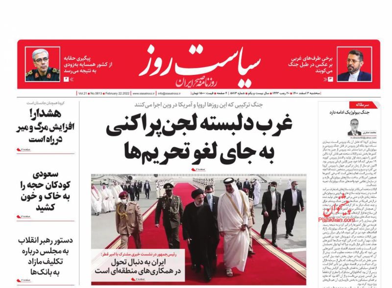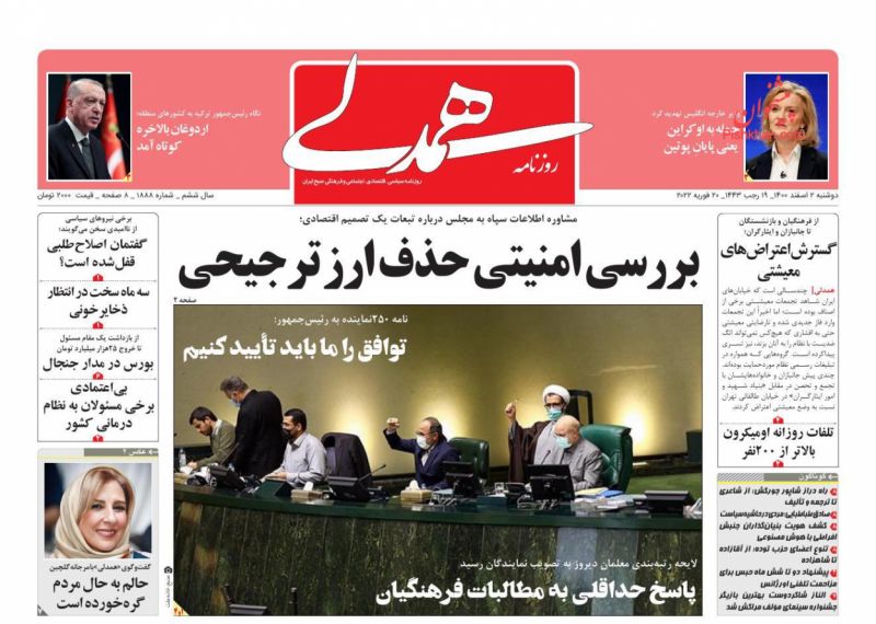 جمهوری اسلامی ، دوشنبه ۲ اسفند