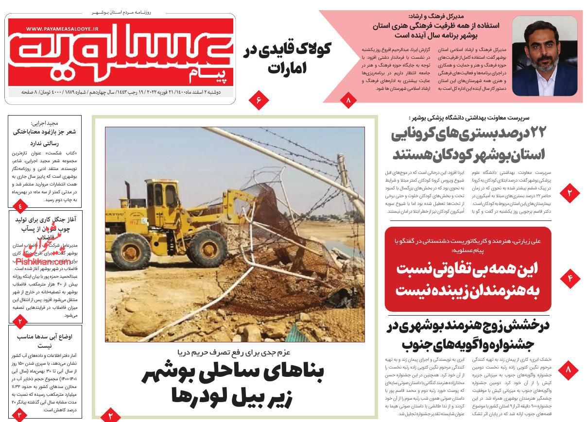 پیام عسلویه ، دوشنبه ۲ اسفند