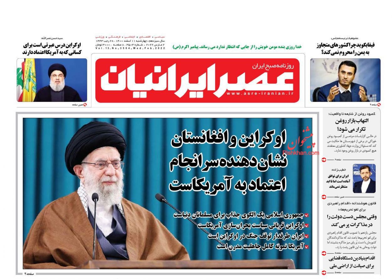 عصر ایرانیان ، چهارشنبه ۱۱ اسفند