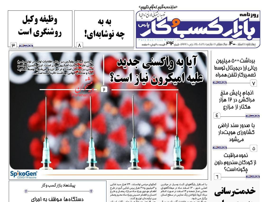 بازار کسب و کار ، چهارشنبه ۱۱ اسفند