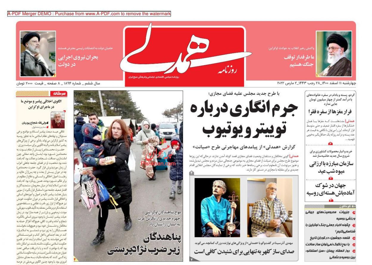 جمهوری اسلامی ، چهارشنبه ۱۱ اسفند