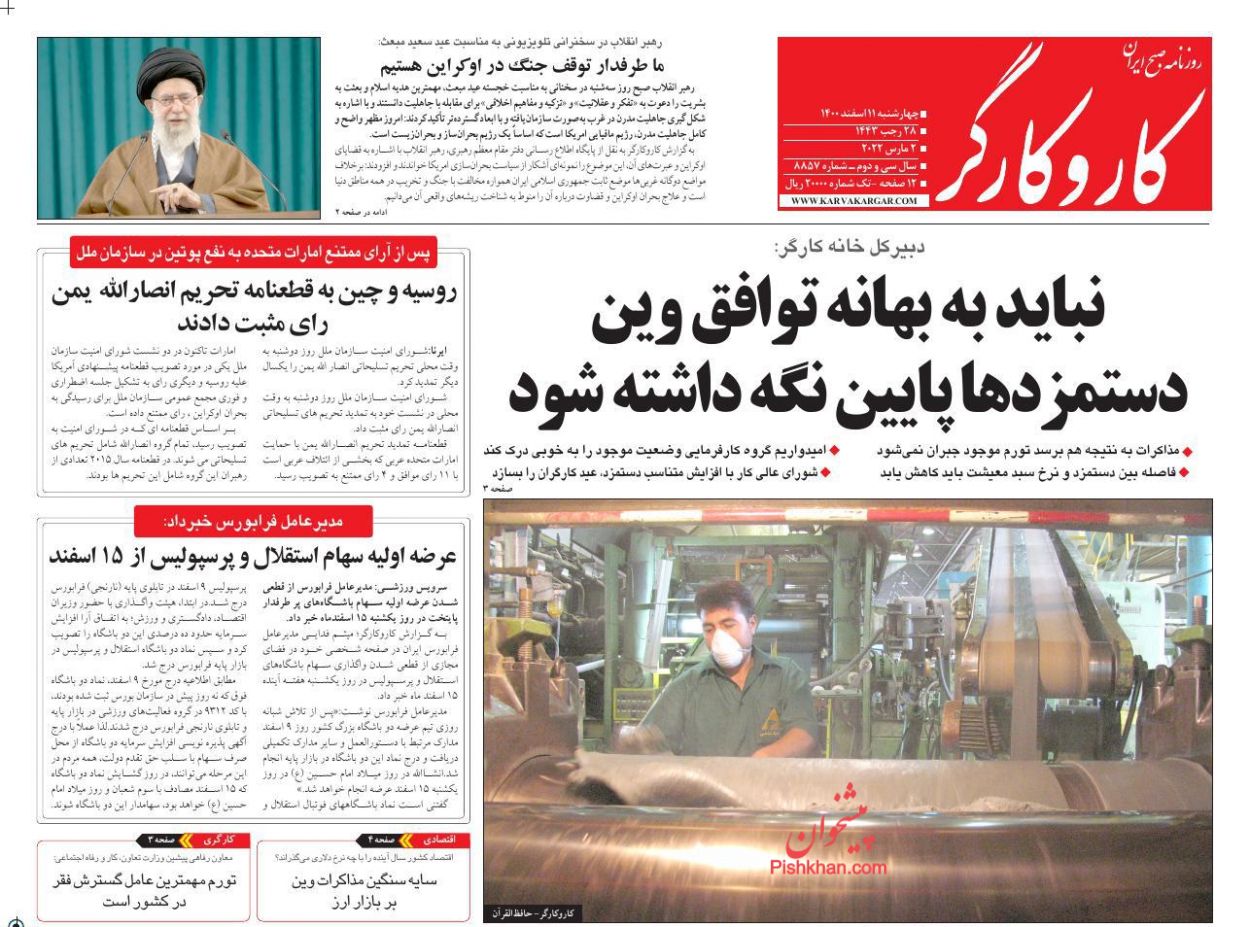 کار و کارگر ، چهارشنبه ۱۱ اسفند