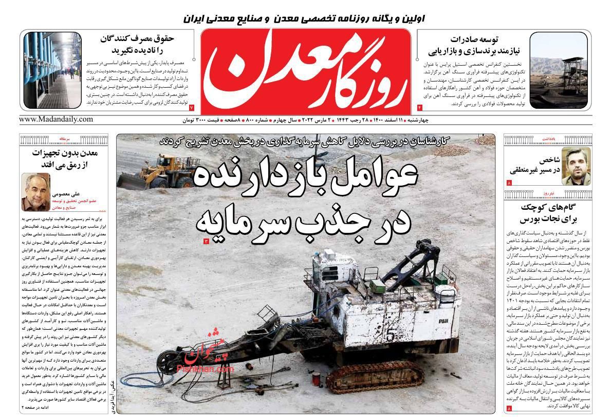 روزگار معدن ، چهارشنبه ۱۱ اسفند