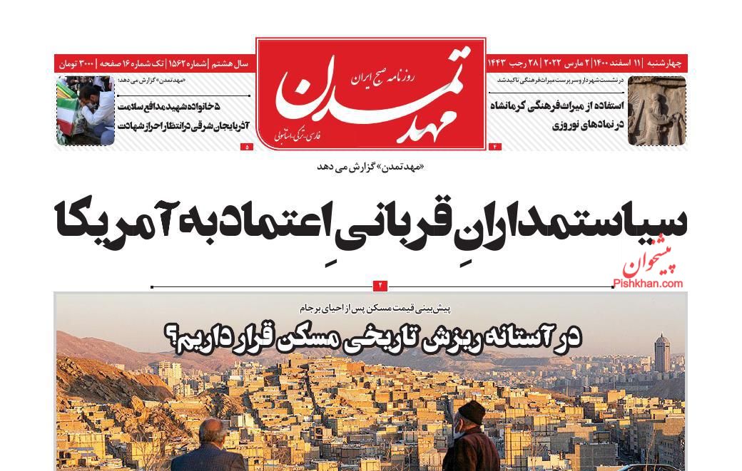 اعتماد ، چهارشنبه ۱۱ اسفند