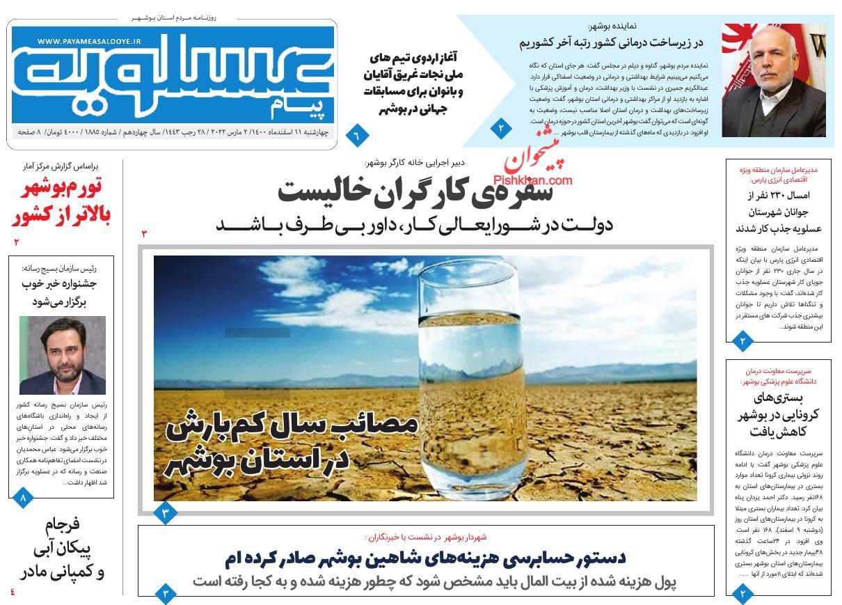 پیام عسلویه ، چهارشنبه ۱۱ اسفند