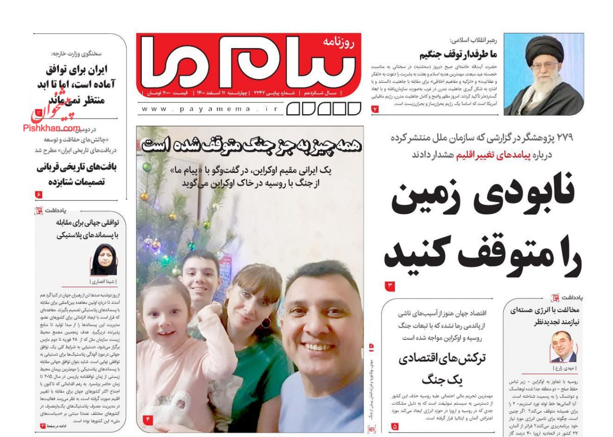 پیام ما ، چهارشنبه ۱۱ اسفند