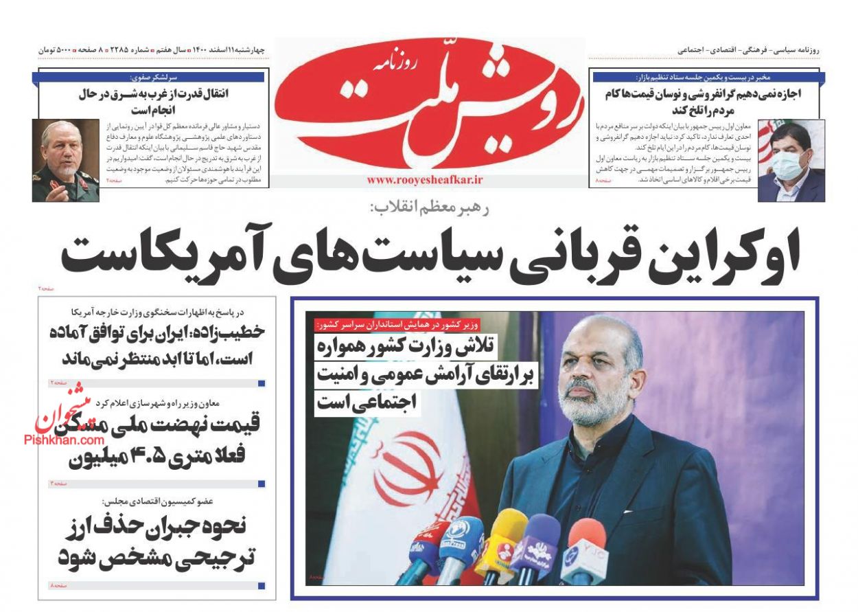 وطن امروز ، چهارشنبه ۱۱ اسفند