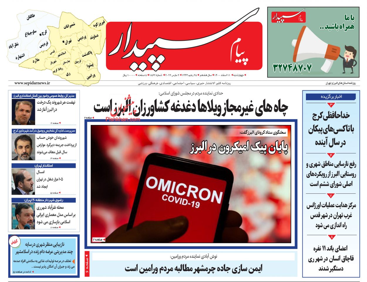 صبح امروز ، چهارشنبه ۱۱ اسفند