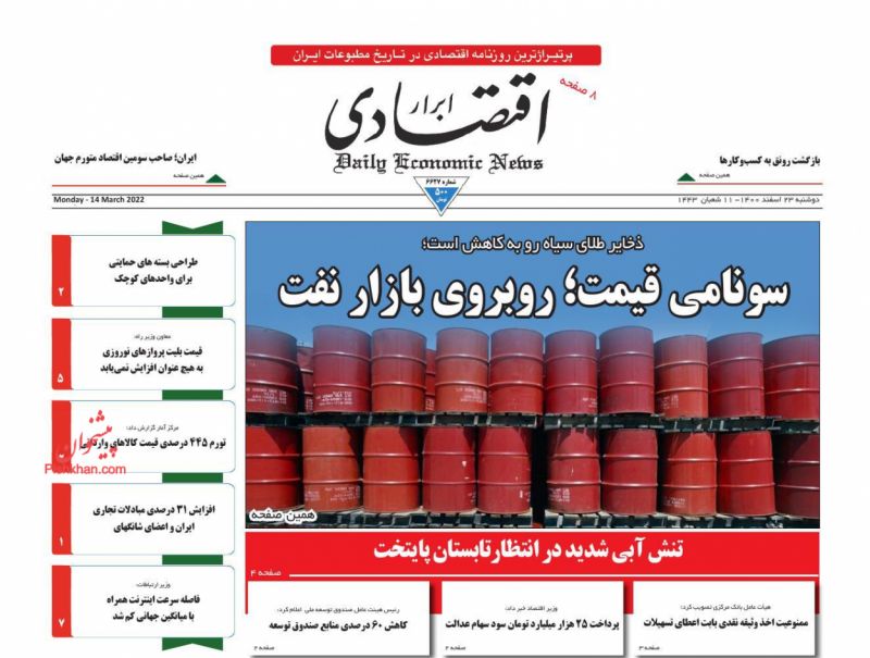 ابرار اقتصادی ، دوشنبه ۲۳ اسفند