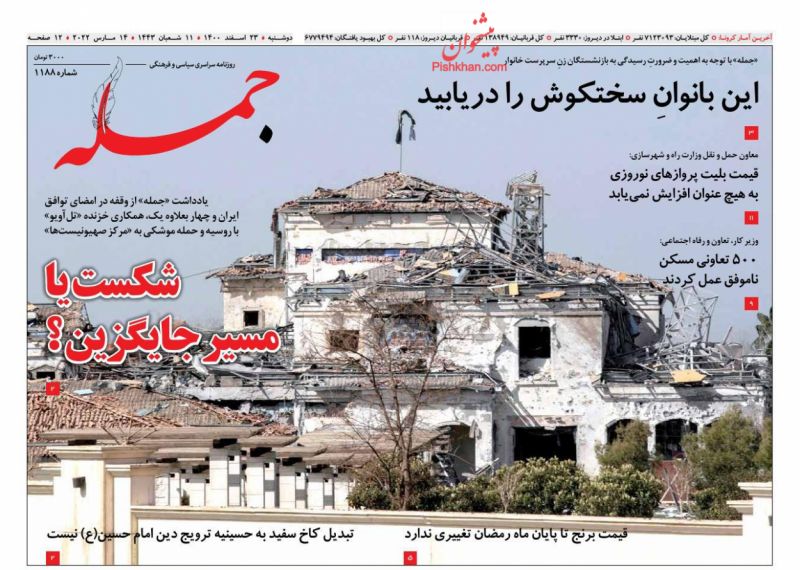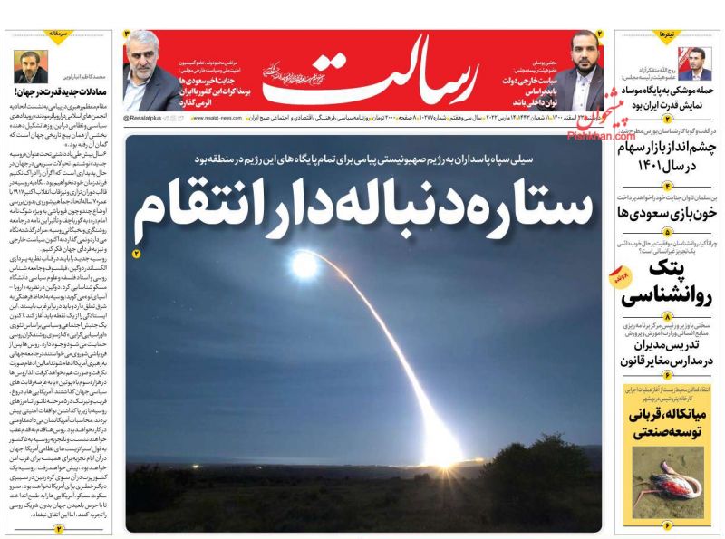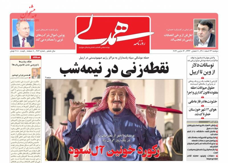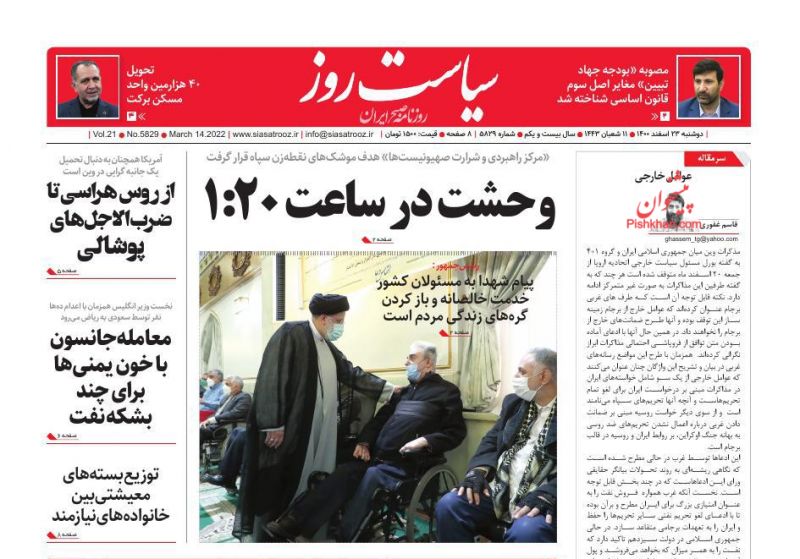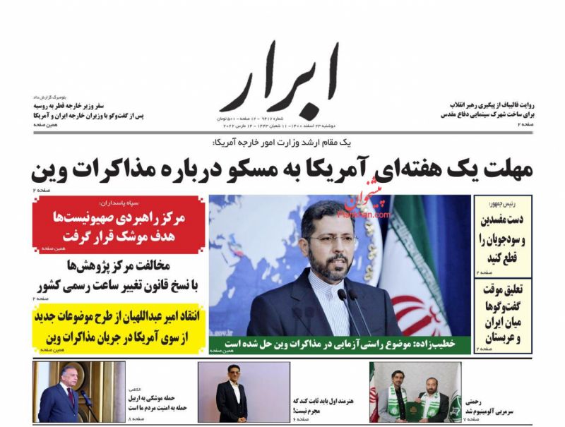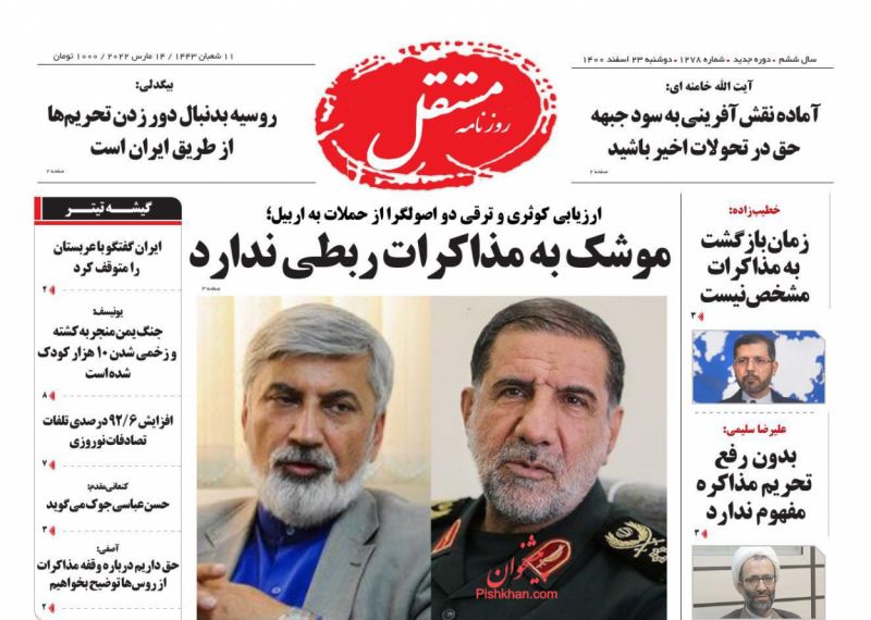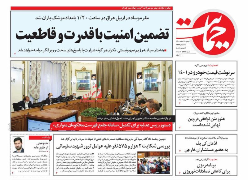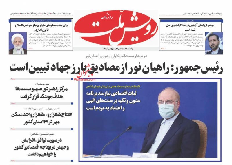 جمهوری اسلامی ، دوشنبه ۲۳ اسفند