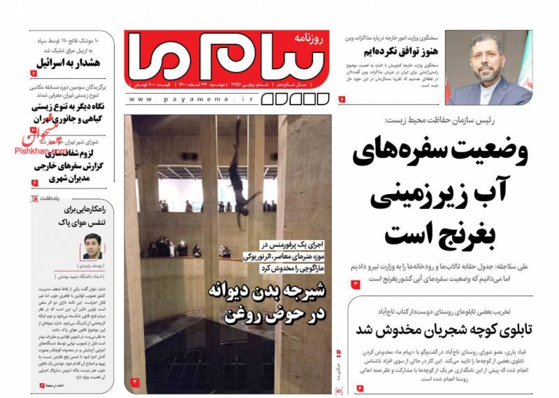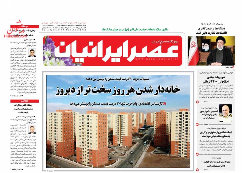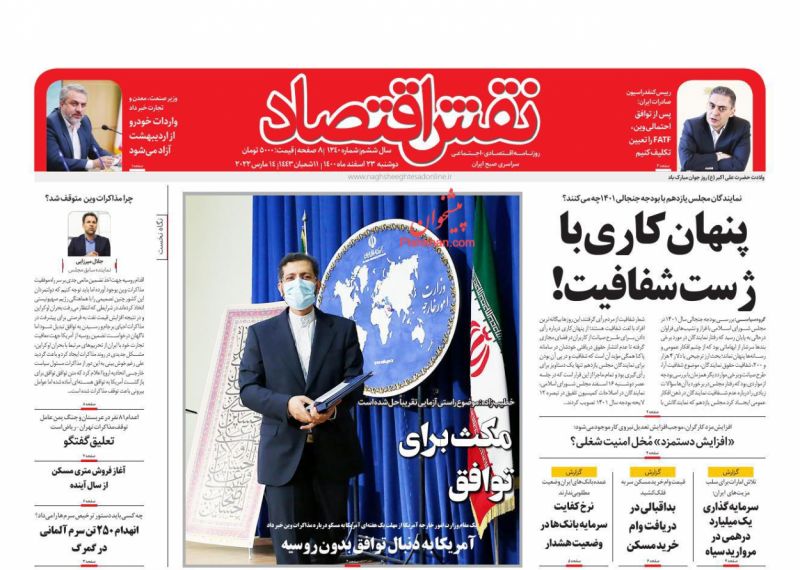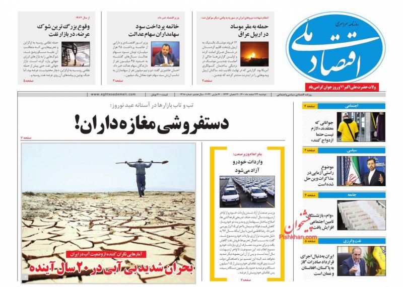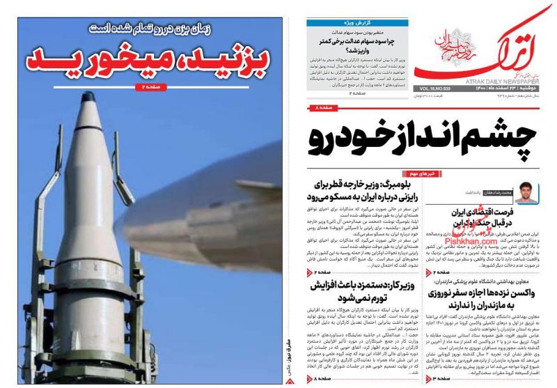 عصر ایرانیان ، دوشنبه ۲۳ اسفند