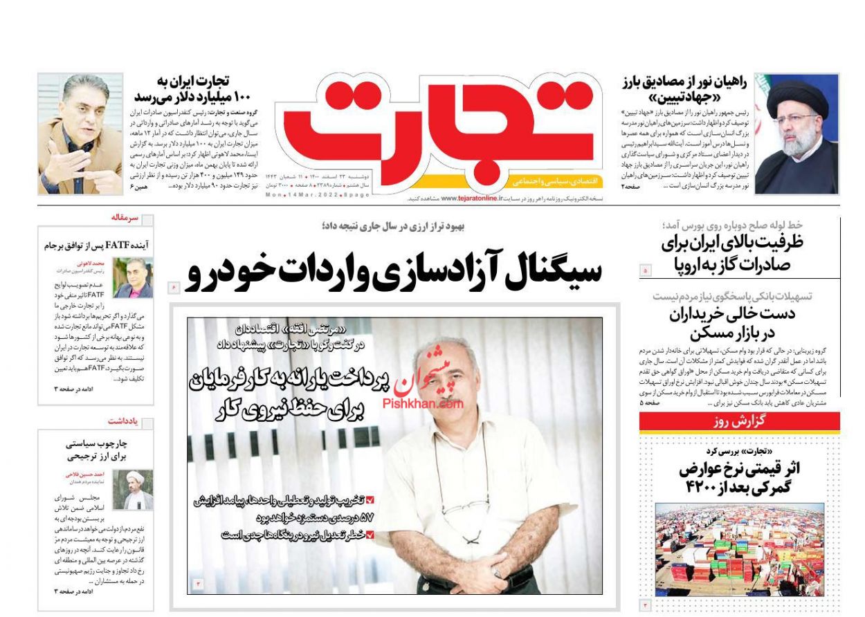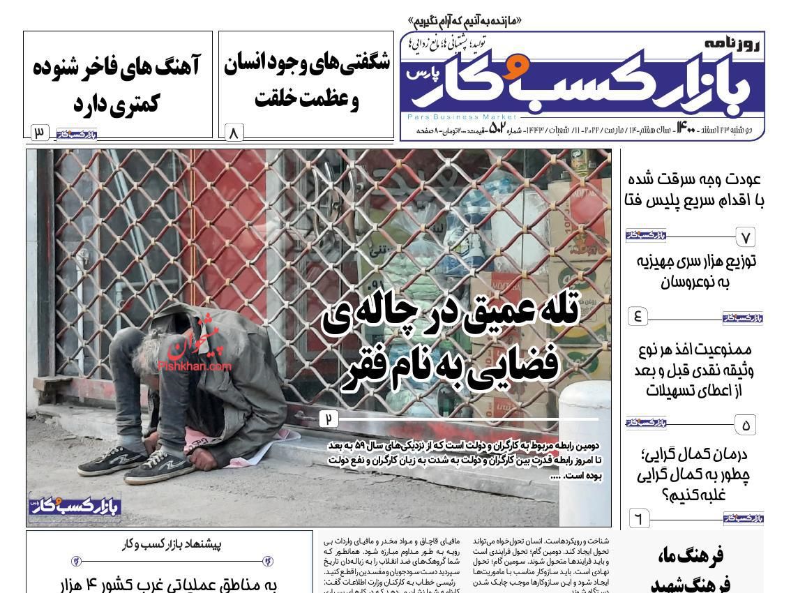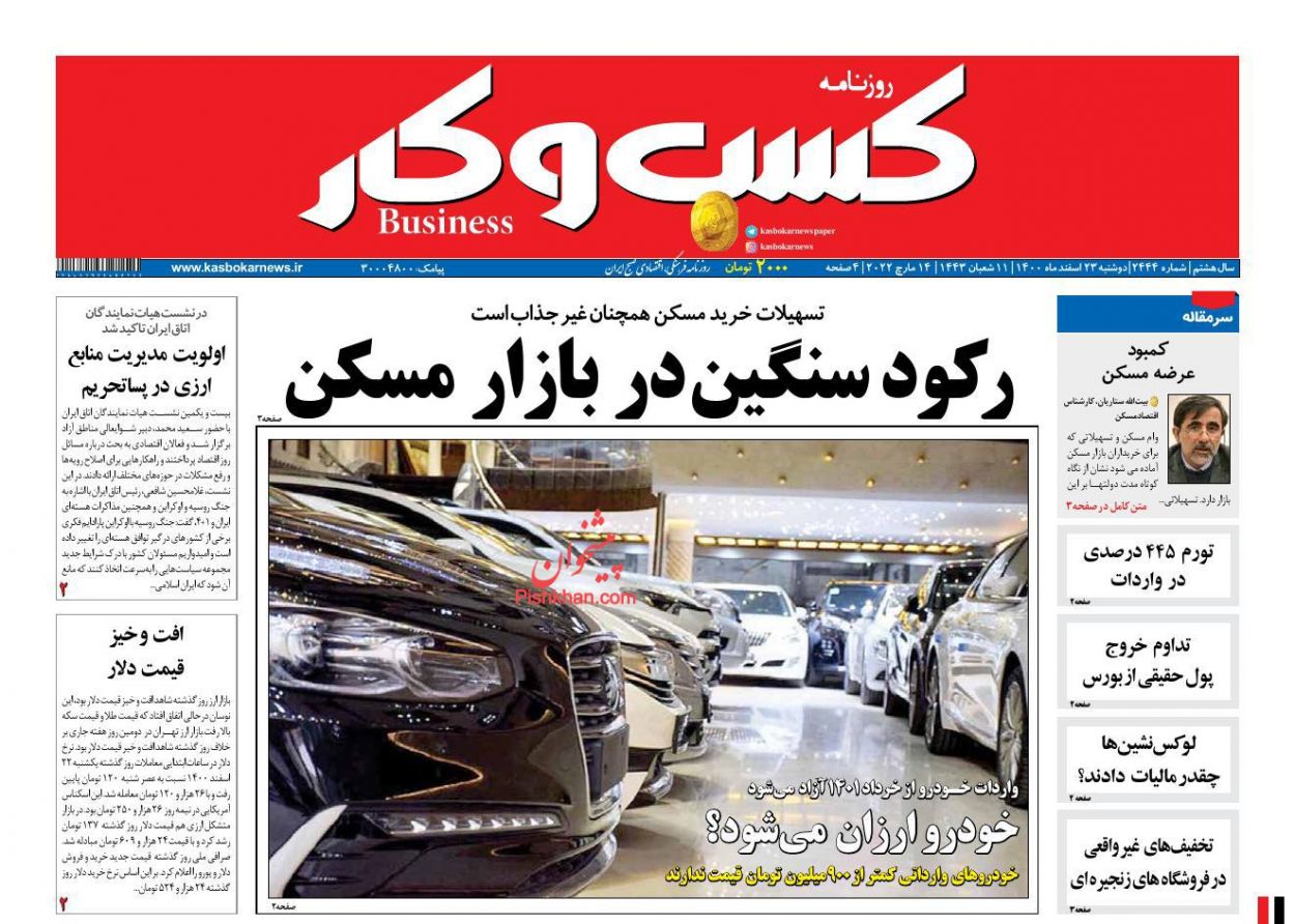 كسب و كار ، دوشنبه ۲۳ اسفند