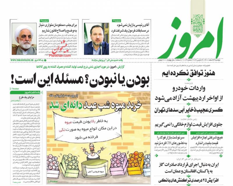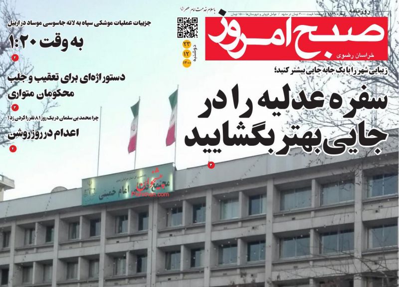 صبح امروز ، دوشنبه ۲۳ اسفند