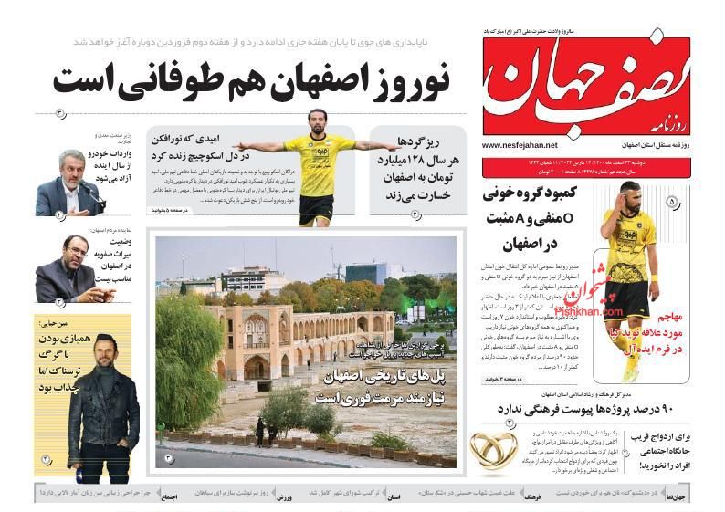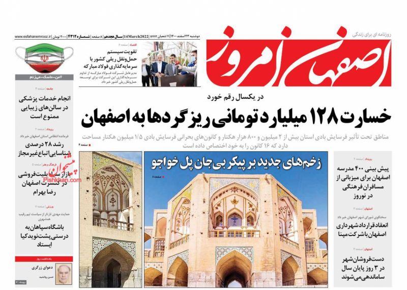 اصفهان امروز ، دوشنبه ۲۳ اسفند