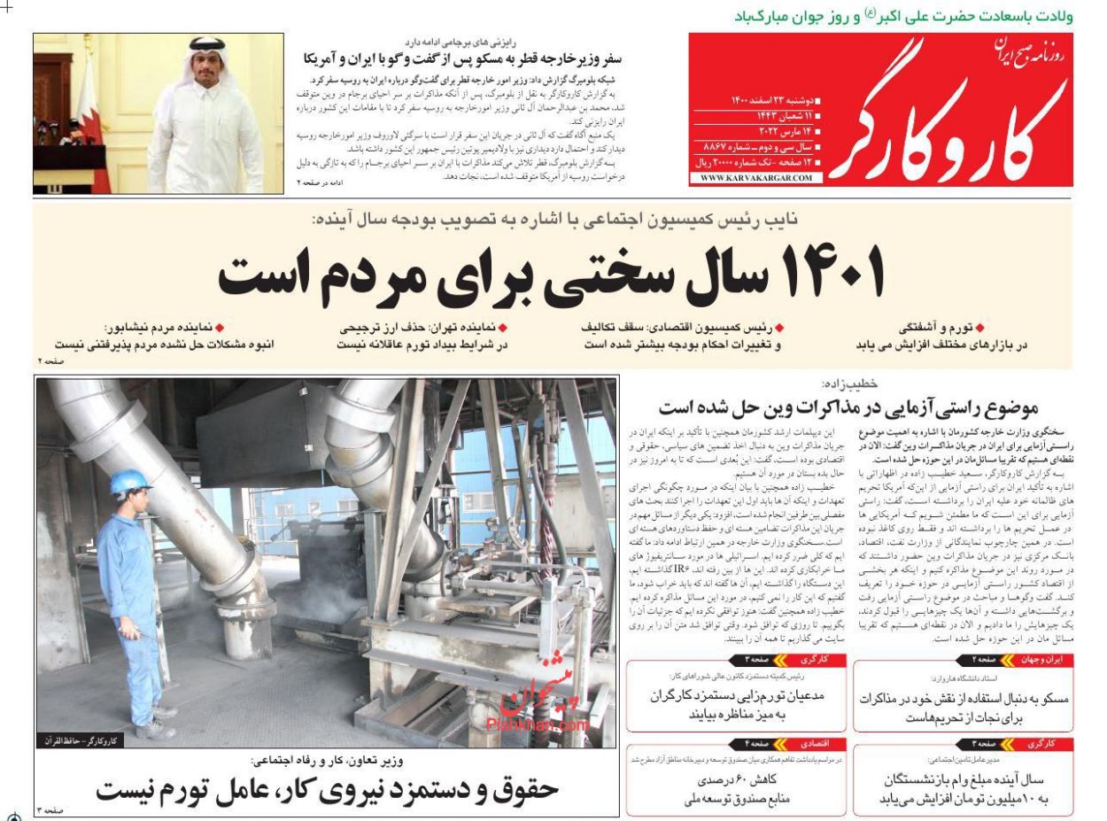 کار و کارگر ، دوشنبه ۲۳ اسفند