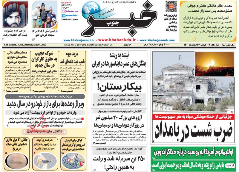 خبر جنوب ، دوشنبه ۲۳ اسفند