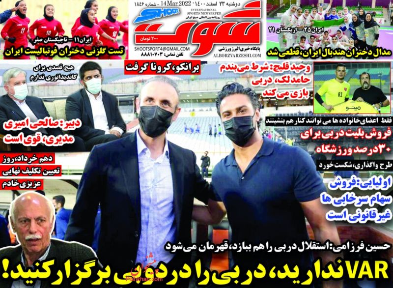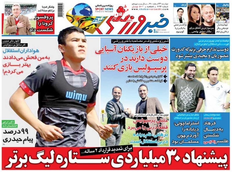 ایران ورزشی ، دوشنبه ۲۳ اسفند