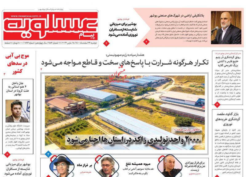پیام عسلویه ، دوشنبه ۲۳ اسفند