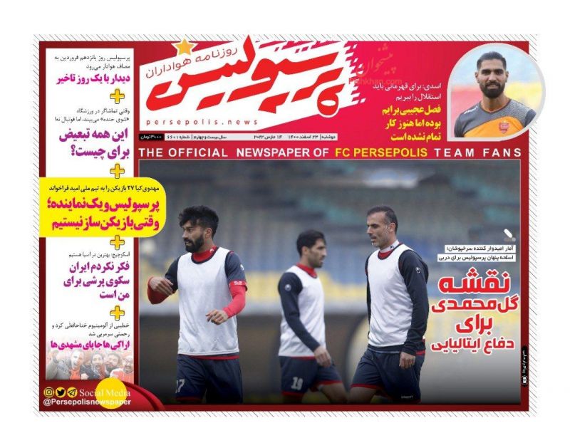 پرسپولیس ، دوشنبه ۲۳ اسفند