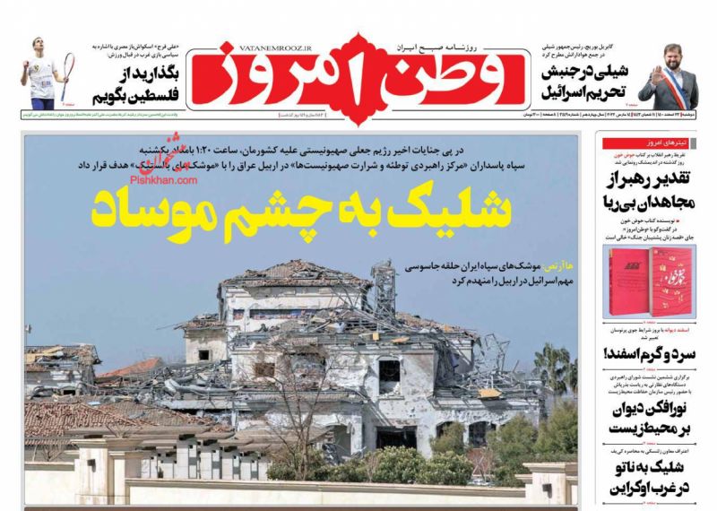 وطن امروز ، دوشنبه ۲۳ اسفند