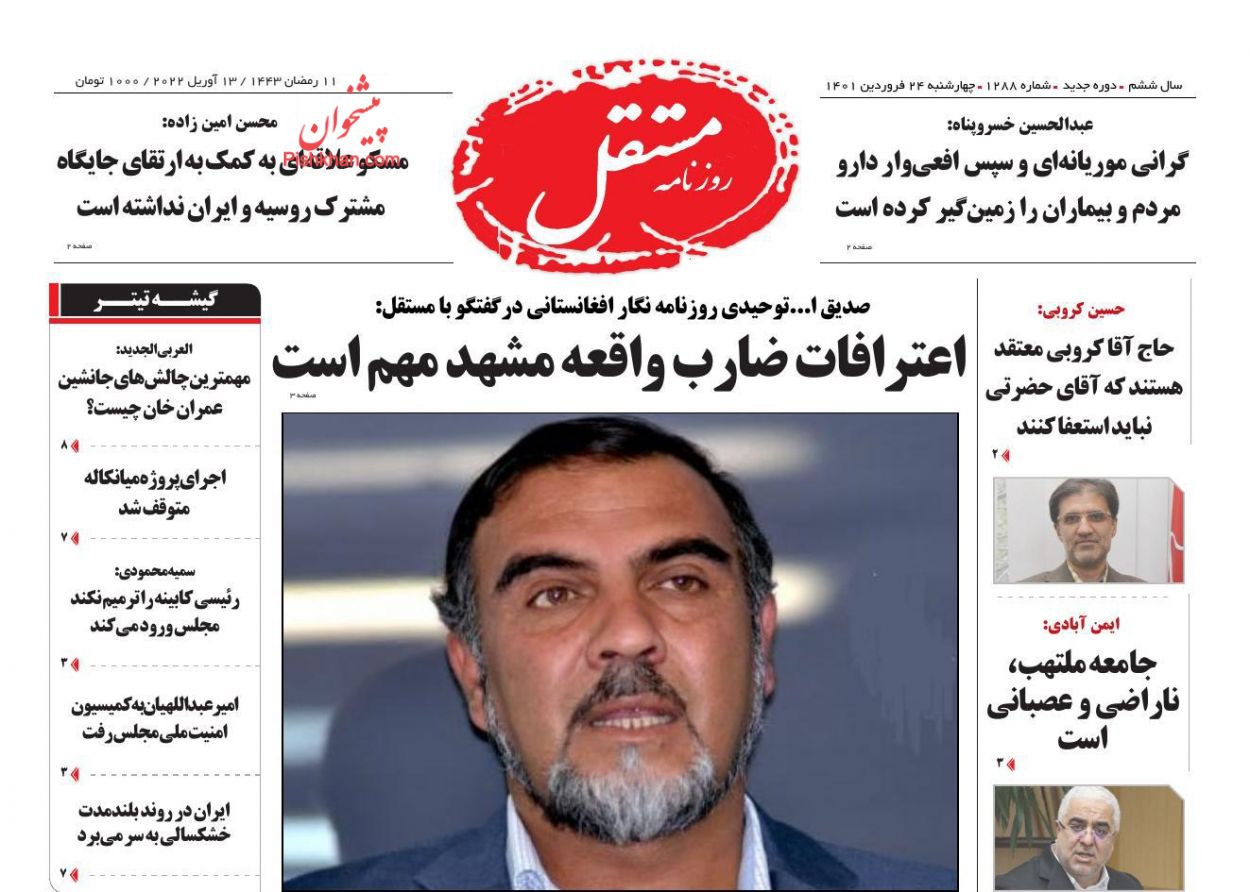 اعتماد ، پنجشنبه ۲۵ فروردين