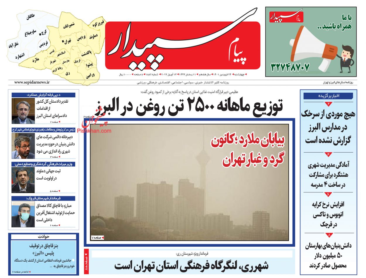 پیام سپیدار ، چهارشنبه ۲۴ فروردين