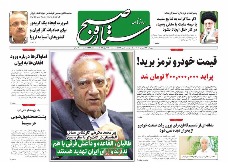 صبح امروز ، پنجشنبه ۲۵ فروردين