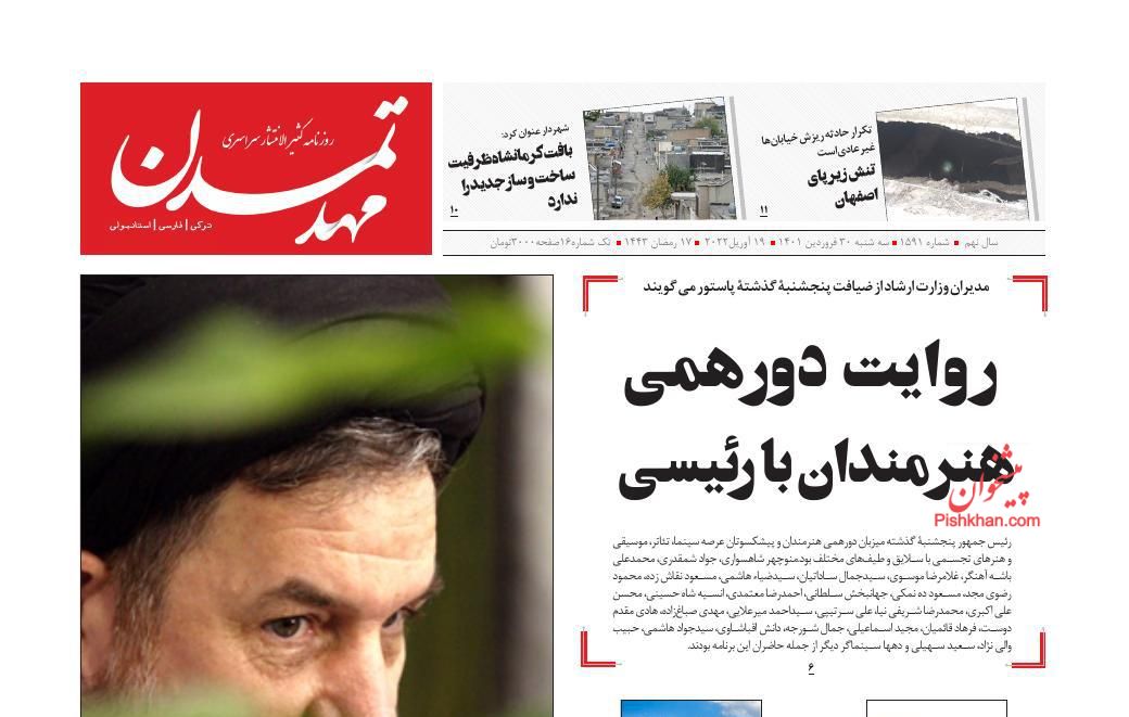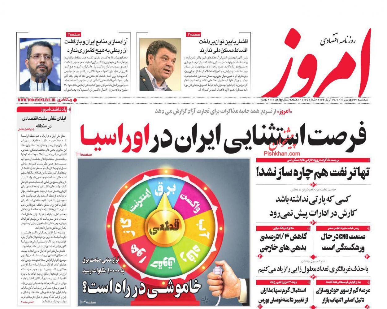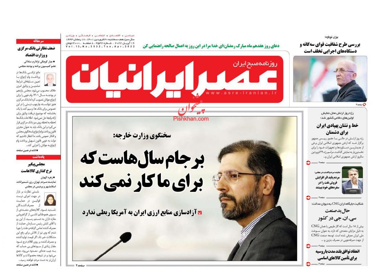 عصر ایرانیان ، سهشنبه ۳۰ فروردين