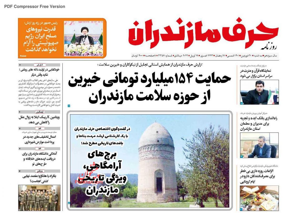 حرف مازندران ، سهشنبه ۳۰ فروردين
