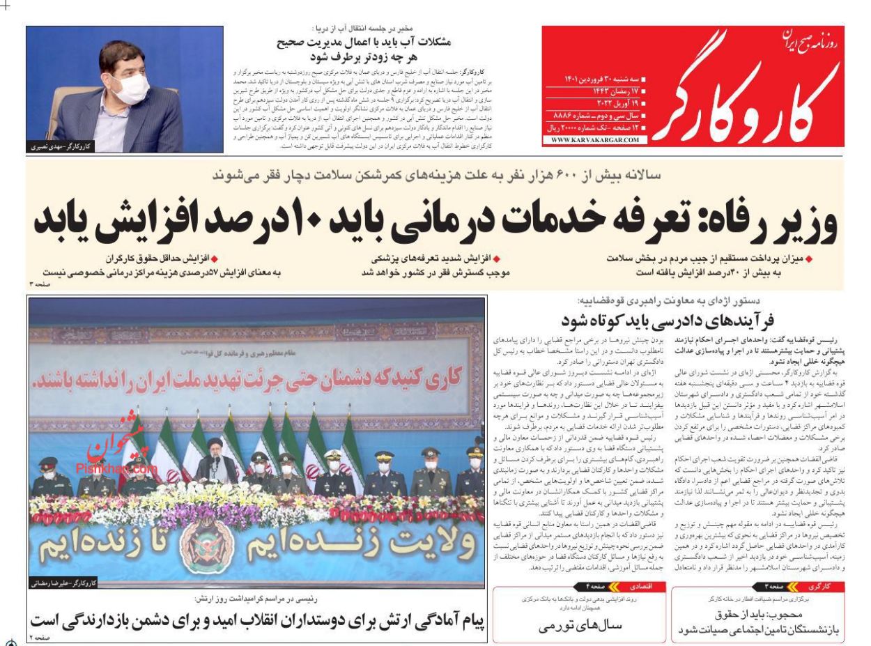 کار و کارگر ، سهشنبه ۳۰ فروردين