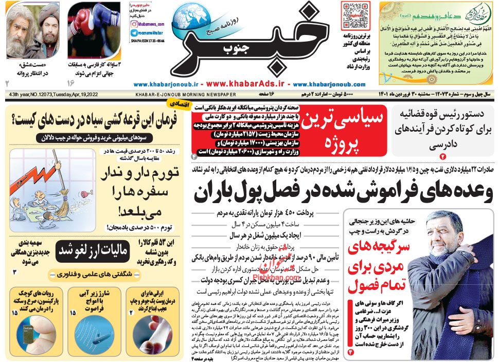 خبر جنوب ، سهشنبه ۳۰ فروردين