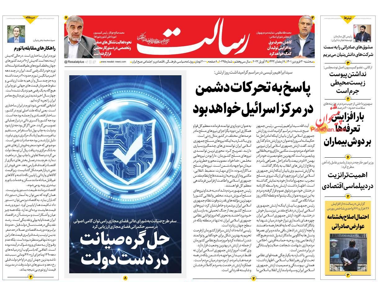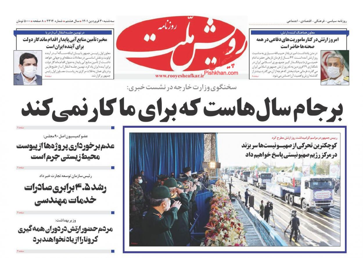 جمهوری اسلامی ، سهشنبه ۳۰ فروردين