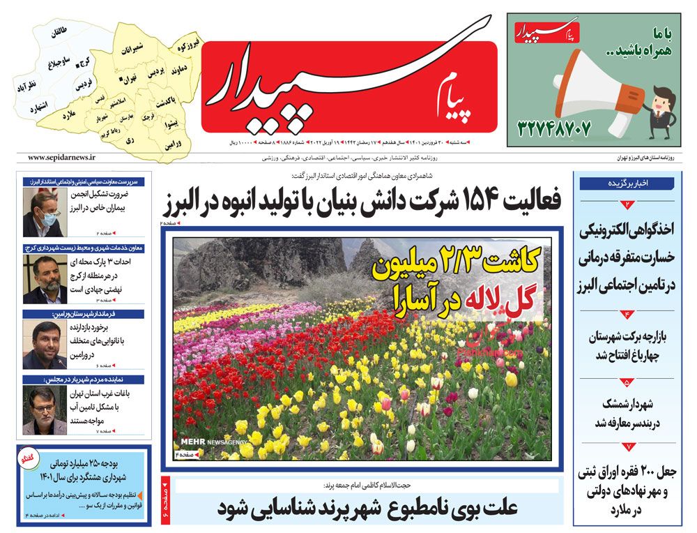 پیام سپیدار ، سهشنبه ۳۰ فروردين