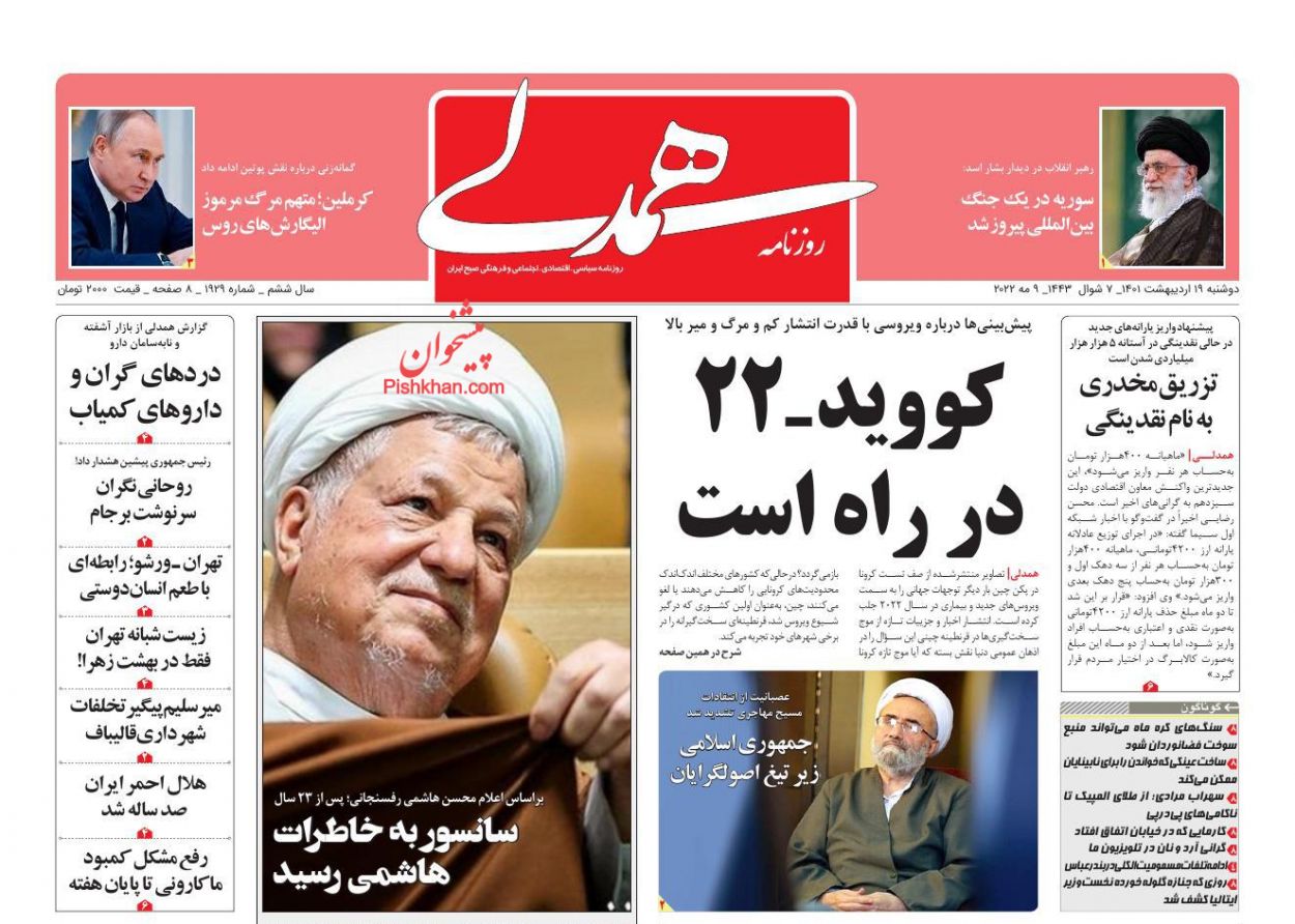 جمهوری اسلامی ، دوشنبه ۱۹ ارديبهشت