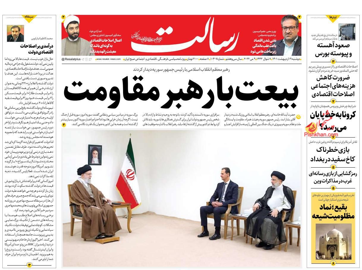 رسالت ، دوشنبه ۱۹ ارديبهشت