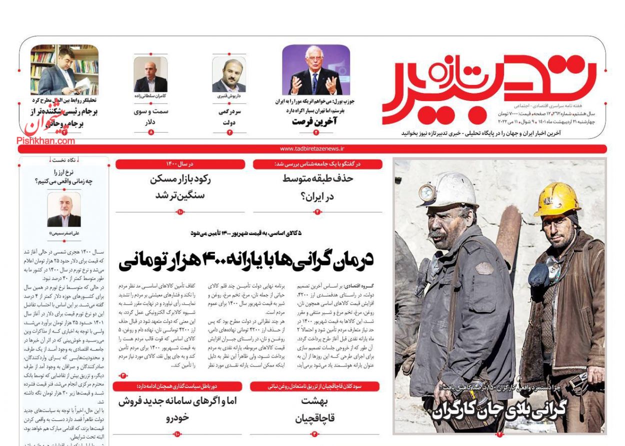 تدبیر تازه ، چهارشنبه ۲۱ ارديبهشت
