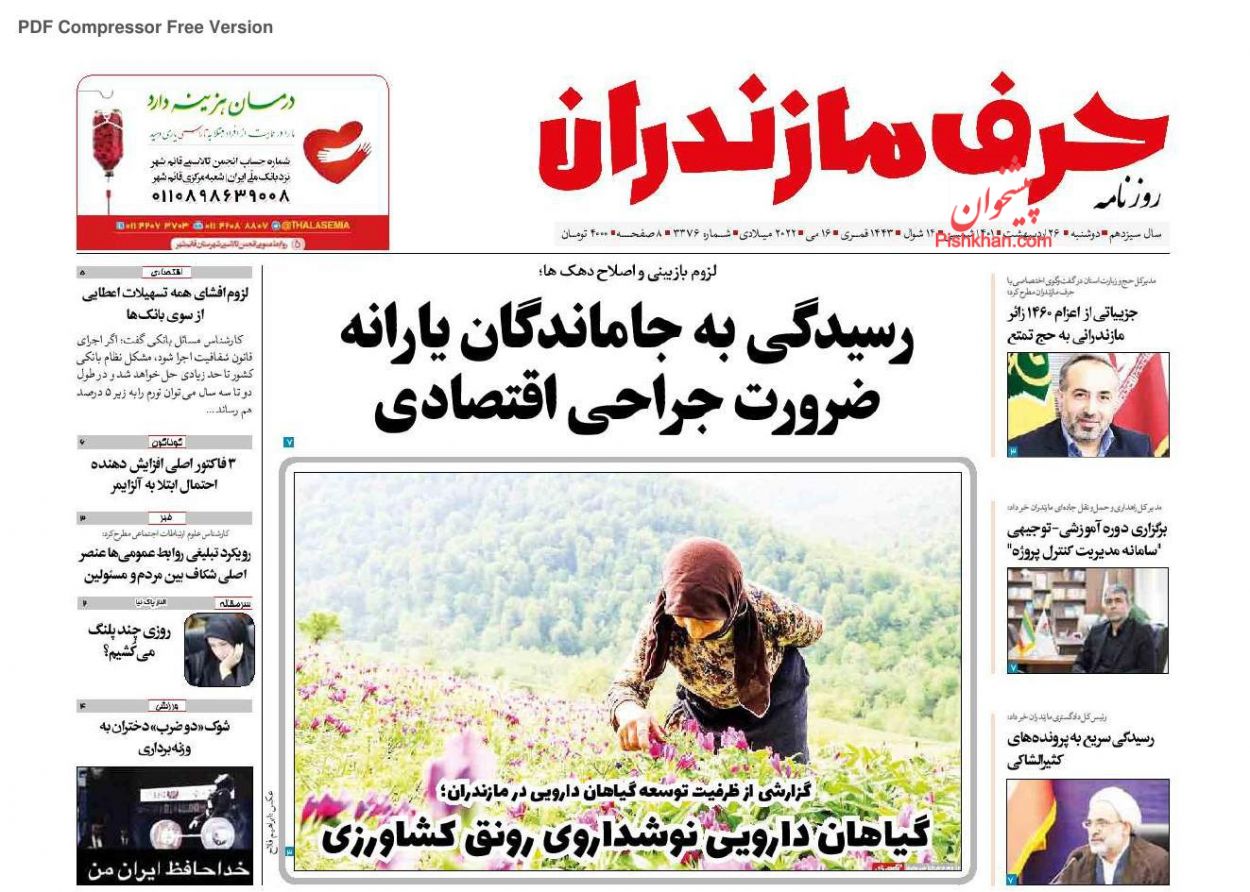 حرف مازندران ، دوشنبه ۲۶ ارديبهشت