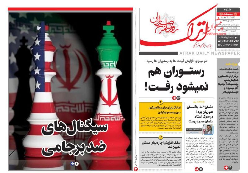 ابتکار ، شنبه ۳۱ ارديبهشت