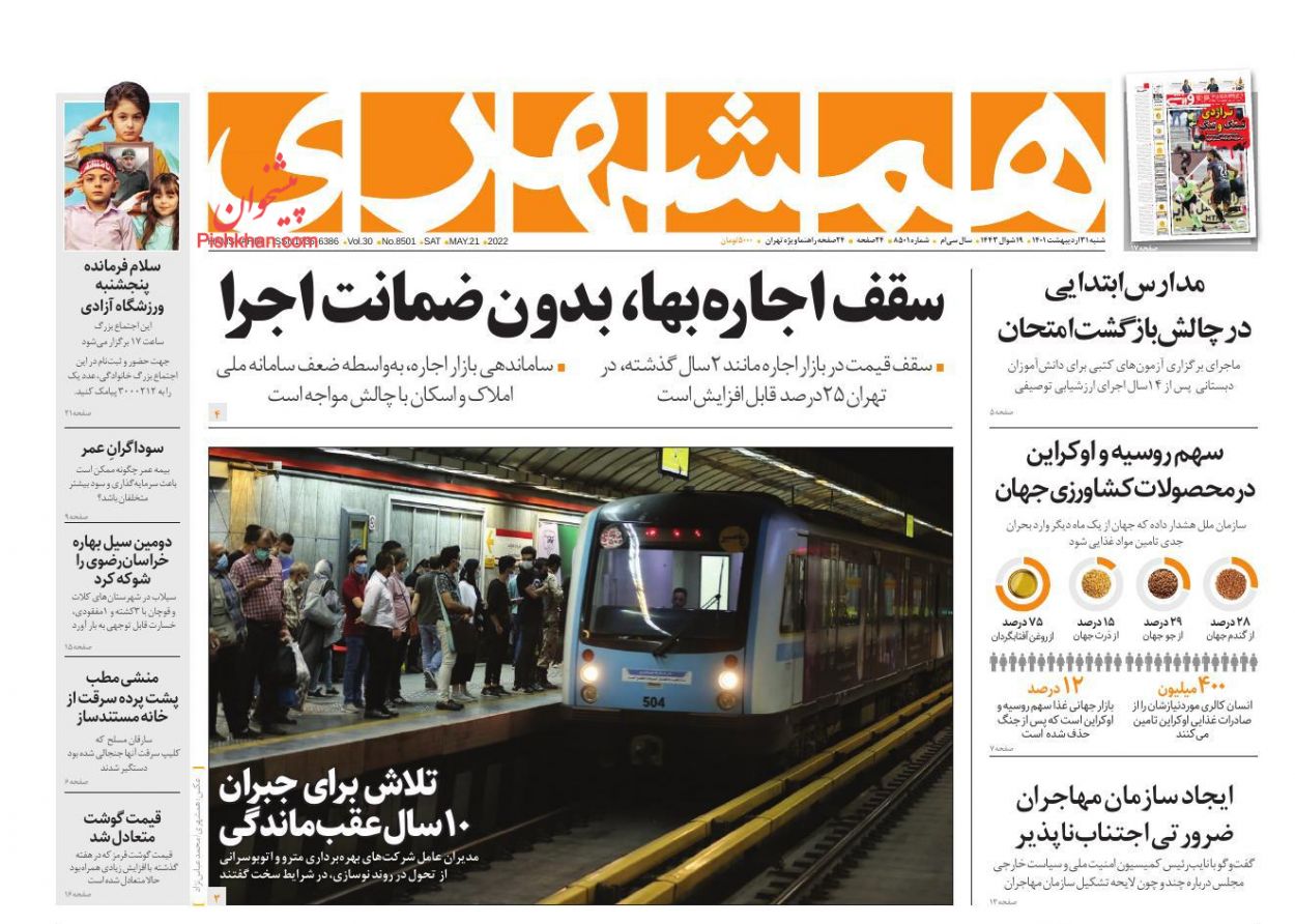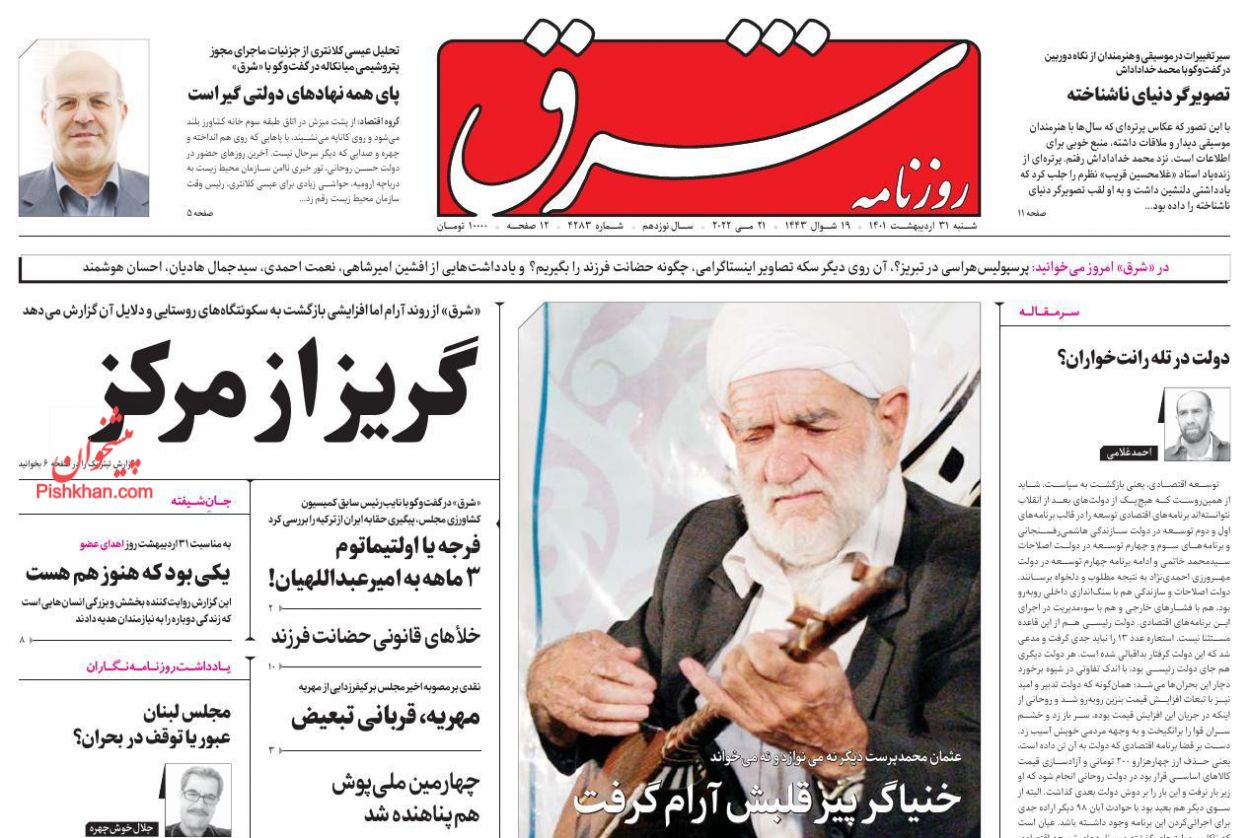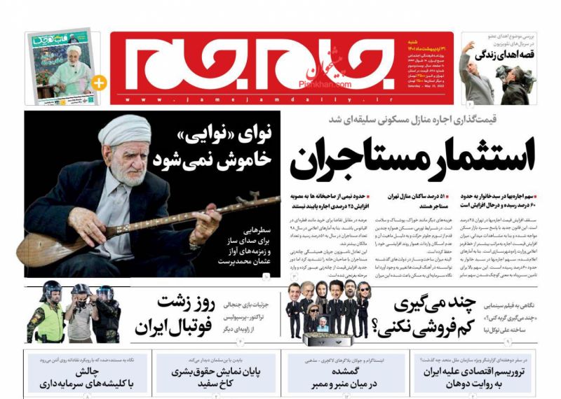 عصر ایرانیان ، شنبه ۳۱ ارديبهشت