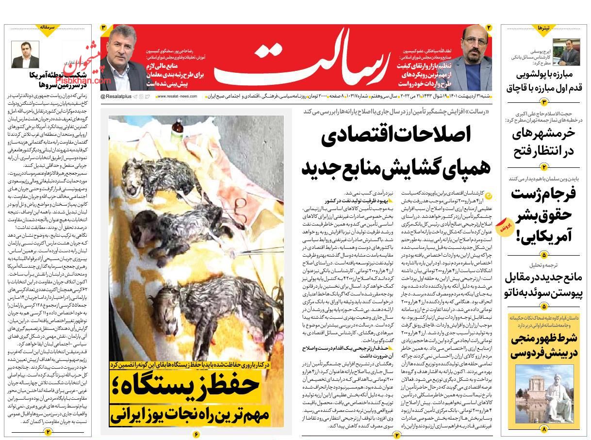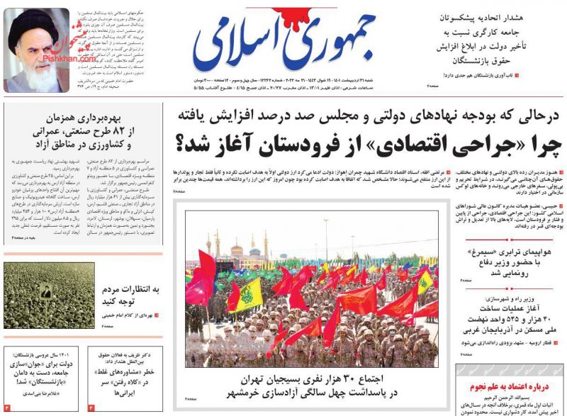 جمهوری اسلامی ، شنبه ۳۱ ارديبهشت