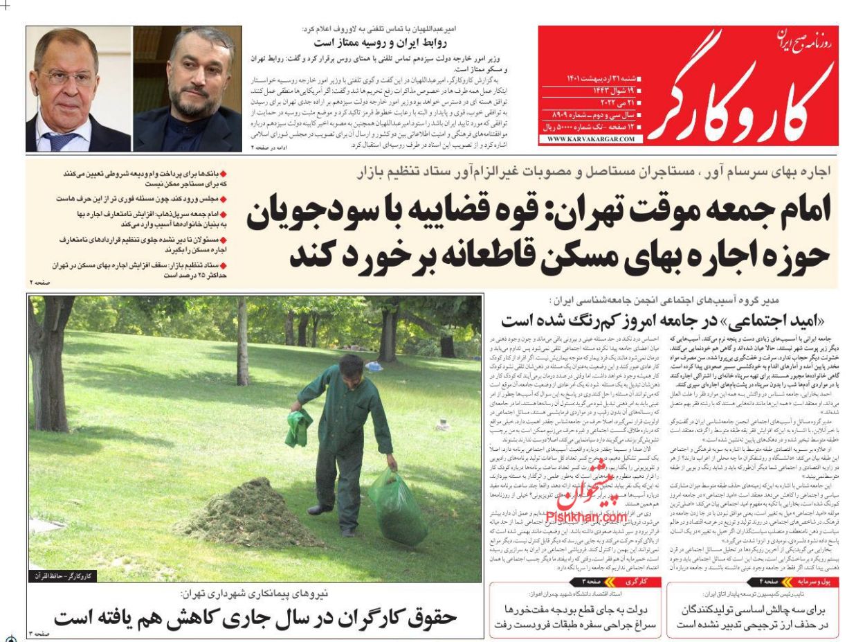 کار و کارگر ، شنبه ۳۱ ارديبهشت
