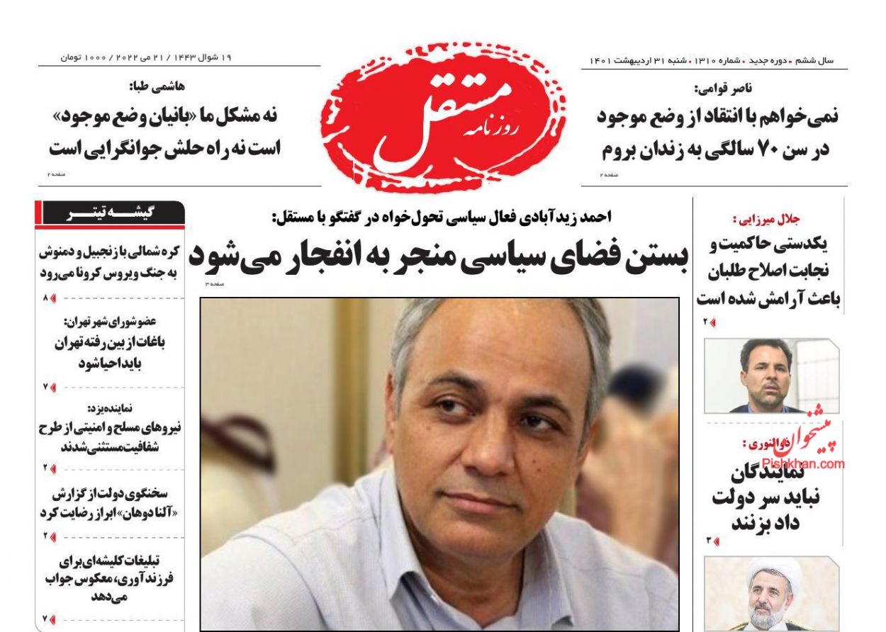 صبح امروز ، شنبه ۳۱ ارديبهشت