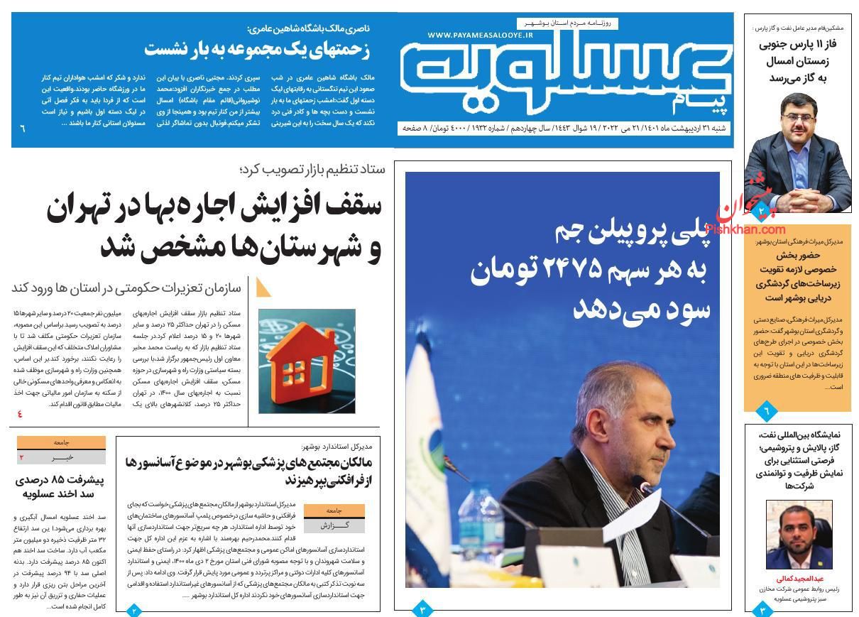 پیام عسلویه ، شنبه ۳۱ ارديبهشت