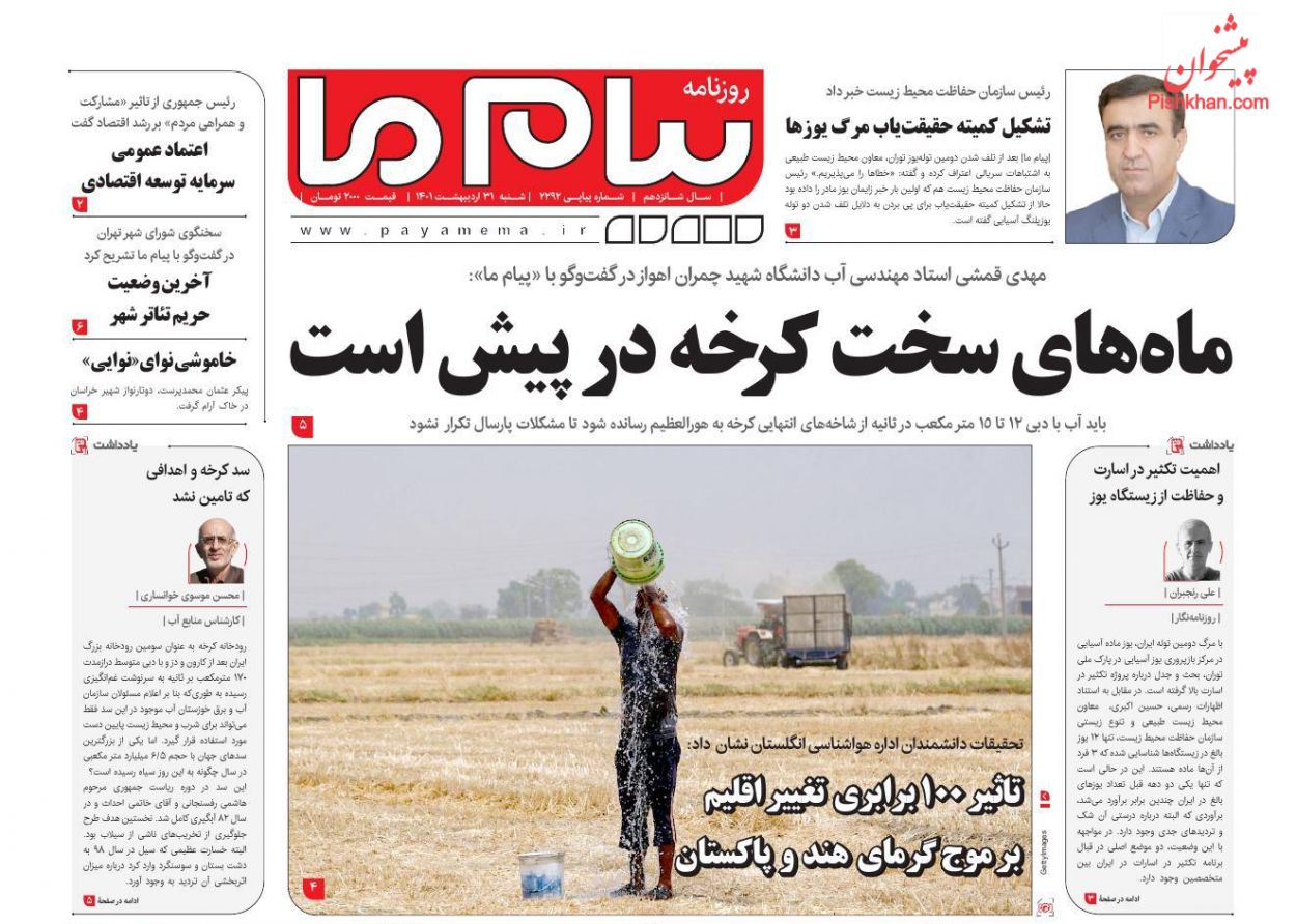 پیام ما ، شنبه ۳۱ ارديبهشت