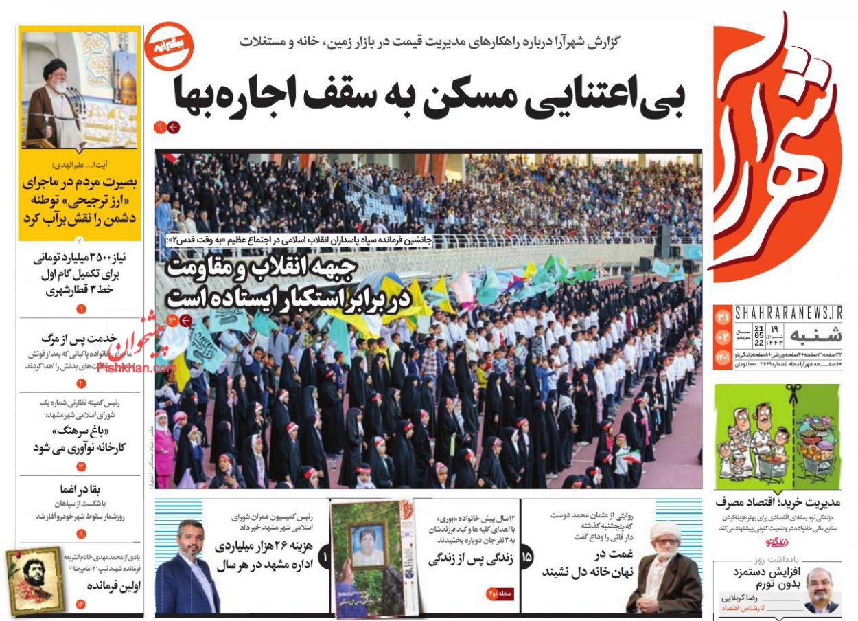شهرآرا ، شنبه ۳۱ ارديبهشت