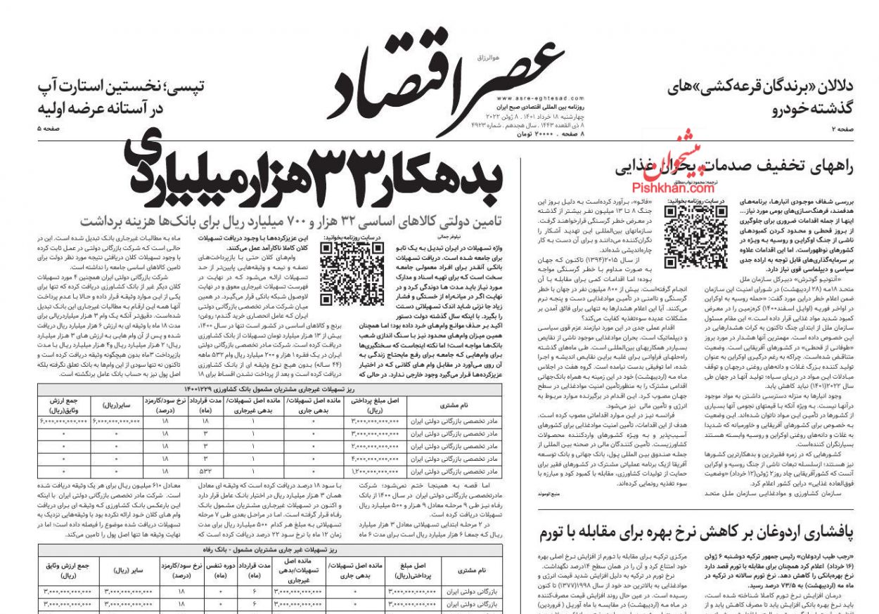 عصر اقتصاد ، چهارشنبه ۱۸ خرداد
