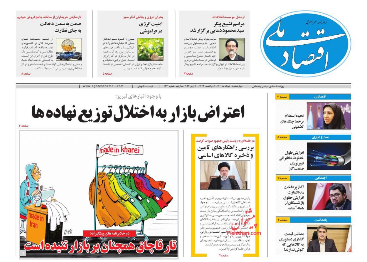 اقتصاد ملی ، چهارشنبه ۱۸ خرداد