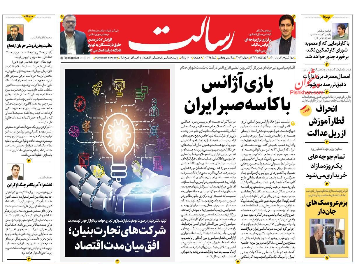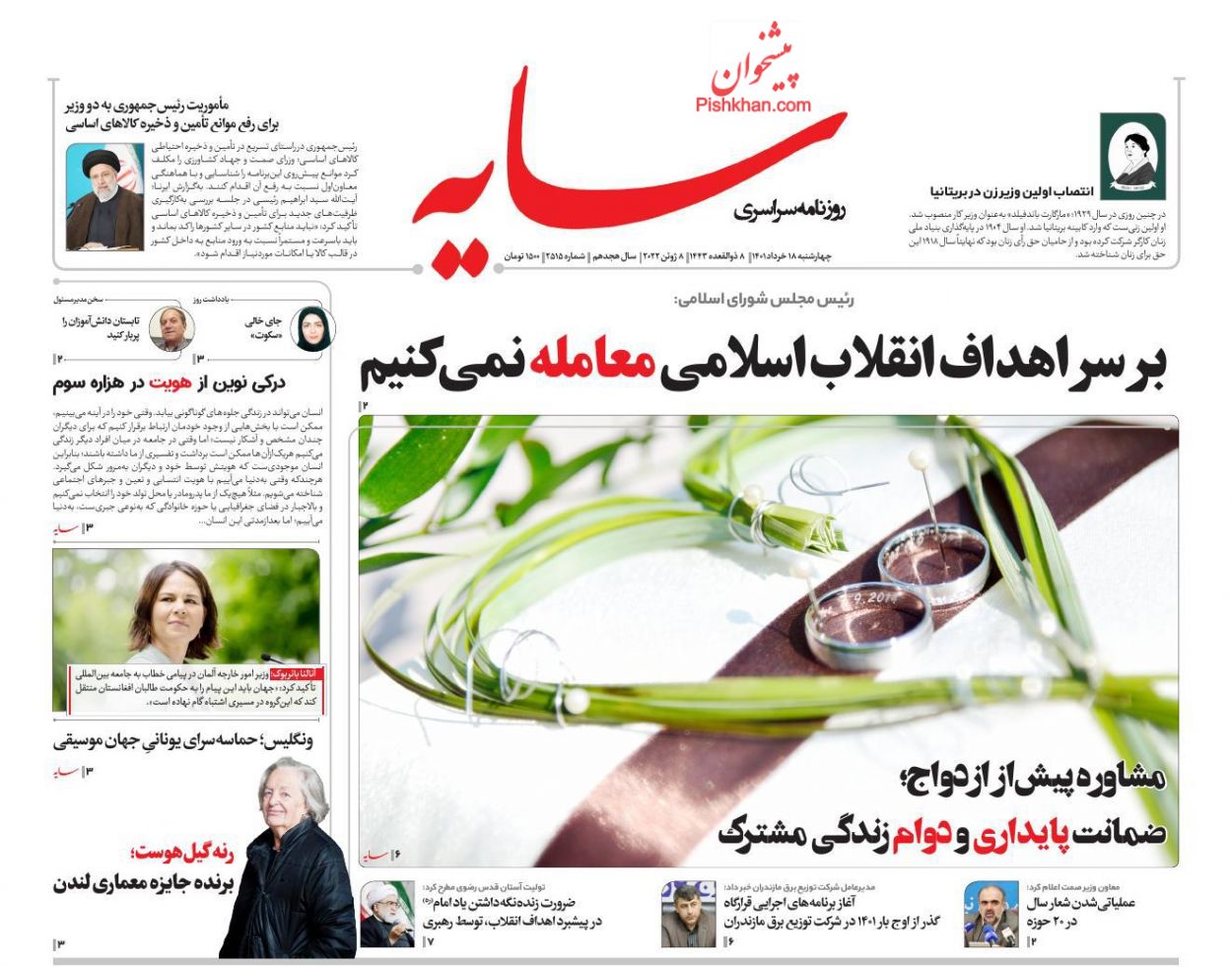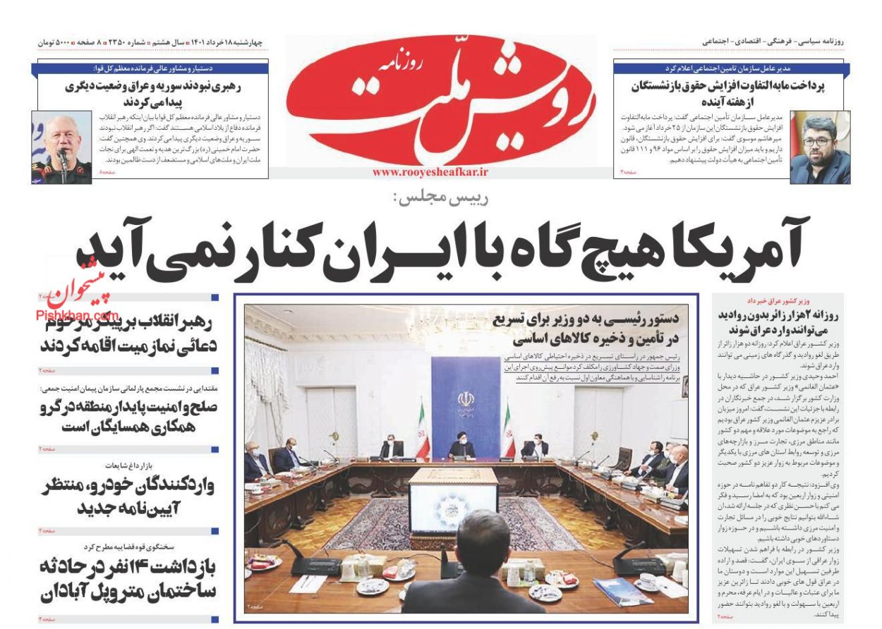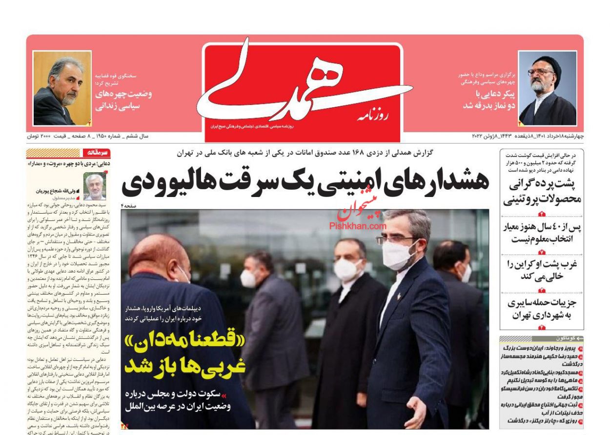 جمهوری اسلامی ، چهارشنبه ۱۸ خرداد