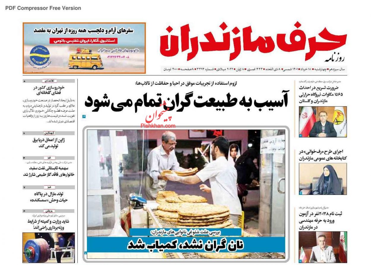 حرف مازندران ، چهارشنبه ۱۸ خرداد