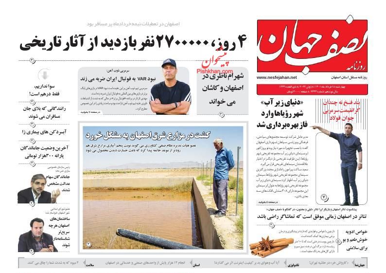آفتاب یزد ، چهارشنبه ۱۸ خرداد